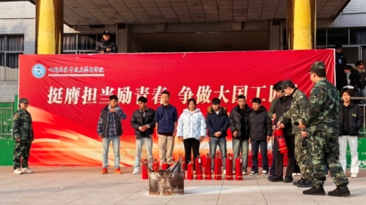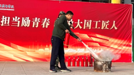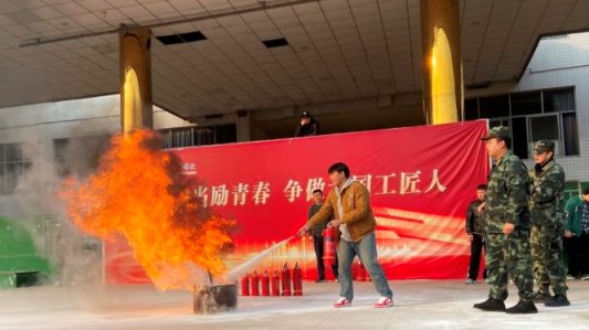 随后,旭宁物业经理吴军以通俗易懂的语言,围绕火灾预防、报警、逃生等内容讲解消防知识及如何正确使用灭火器、怎样判断灭火方向,现场演示了灭火器的规范操作方法,并邀请部分学生和老师上台进行实操演练。