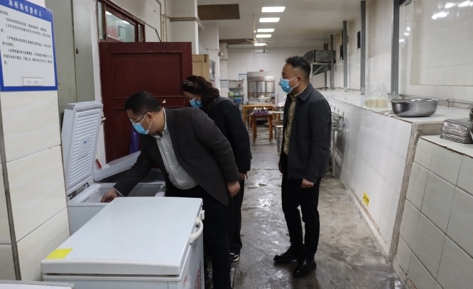 会后,周志明一行人深入食堂后厨实地查看了食材仓储间、烹饪操作间等重点区域,重点对食品原料采购验收、加工制作流程、餐饮具消毒保洁、从业人员健康管理、食品留样制度落实等关键环节进行了全面检查。