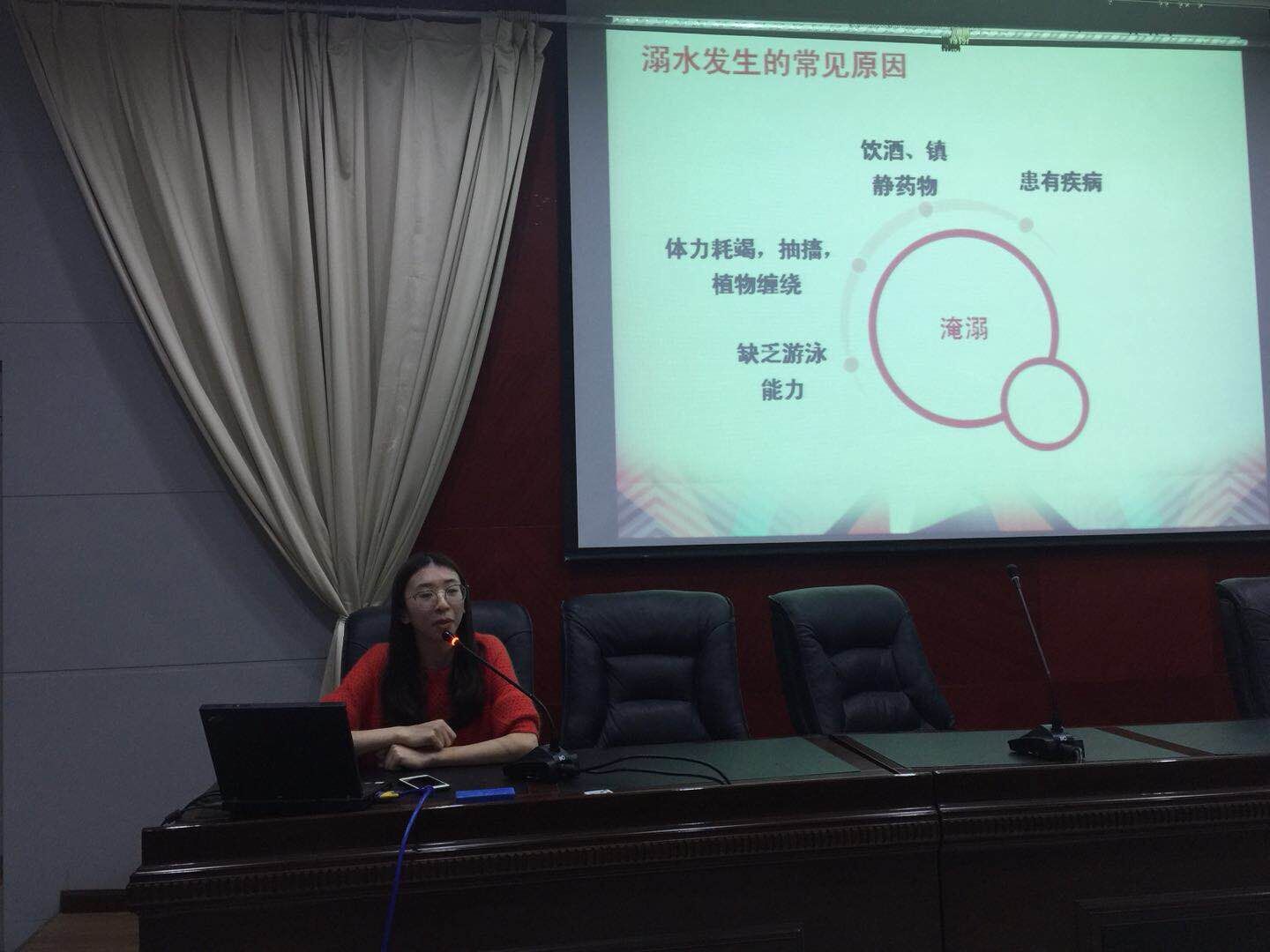 讲座中,彭雪沛老师以播放视频展示真实案例、讲解急救技巧、学生示范为主要形式,围绕淹溺的自救与他救、中暑的判断与预防、烧烫伤分度和现场应急措施等三方面内容进行深入浅出的讲解。讲座过程中,学生们热情高涨,积极参与互动,踊跃回答彭老师的现场提问,收到良好效果。