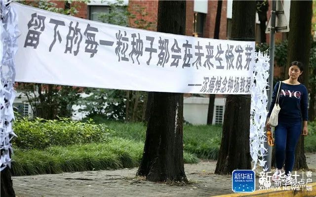 复旦大学校园里怀念钟扬的横幅