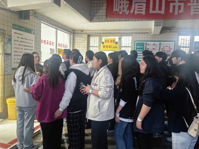 体检当天,各班级学生在教务科老师和班主任的带领下,前往峨眉山市人民医院,顺利完成体检事项。